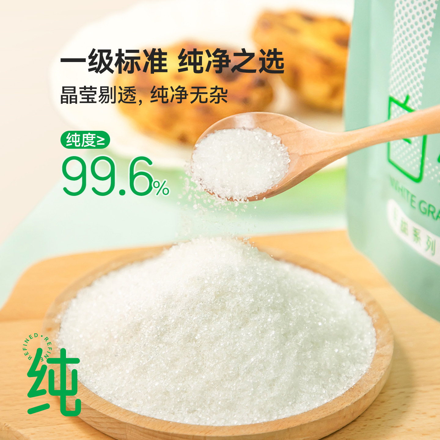 特级白糖具有最高的纯度和最洁白的色泽,颗粒均匀,含水量极低。