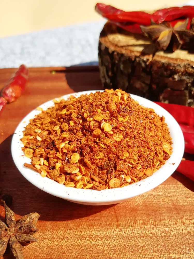 由辣椒干燥后粗略碾碎而成,保留了部分辣椒籽,具有较强的辣味。